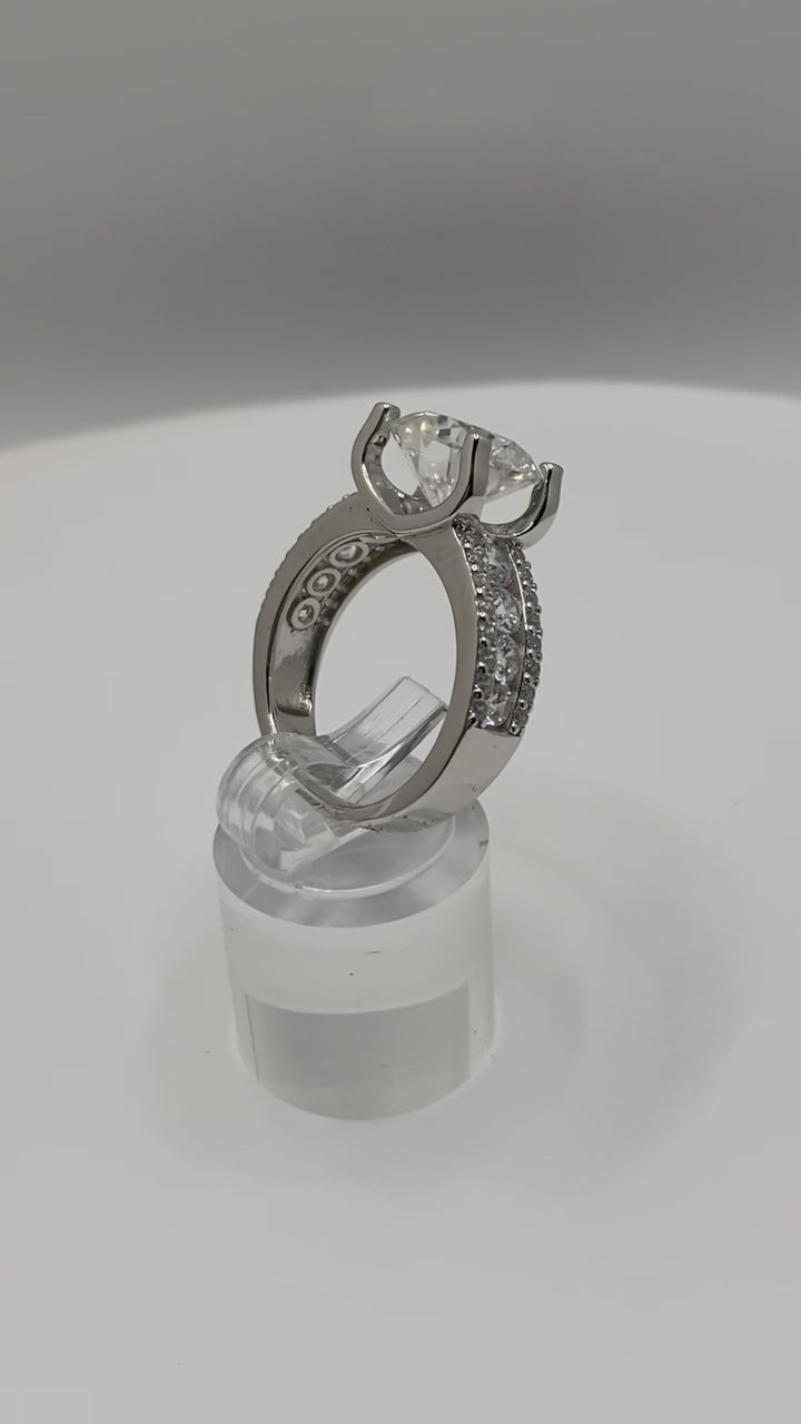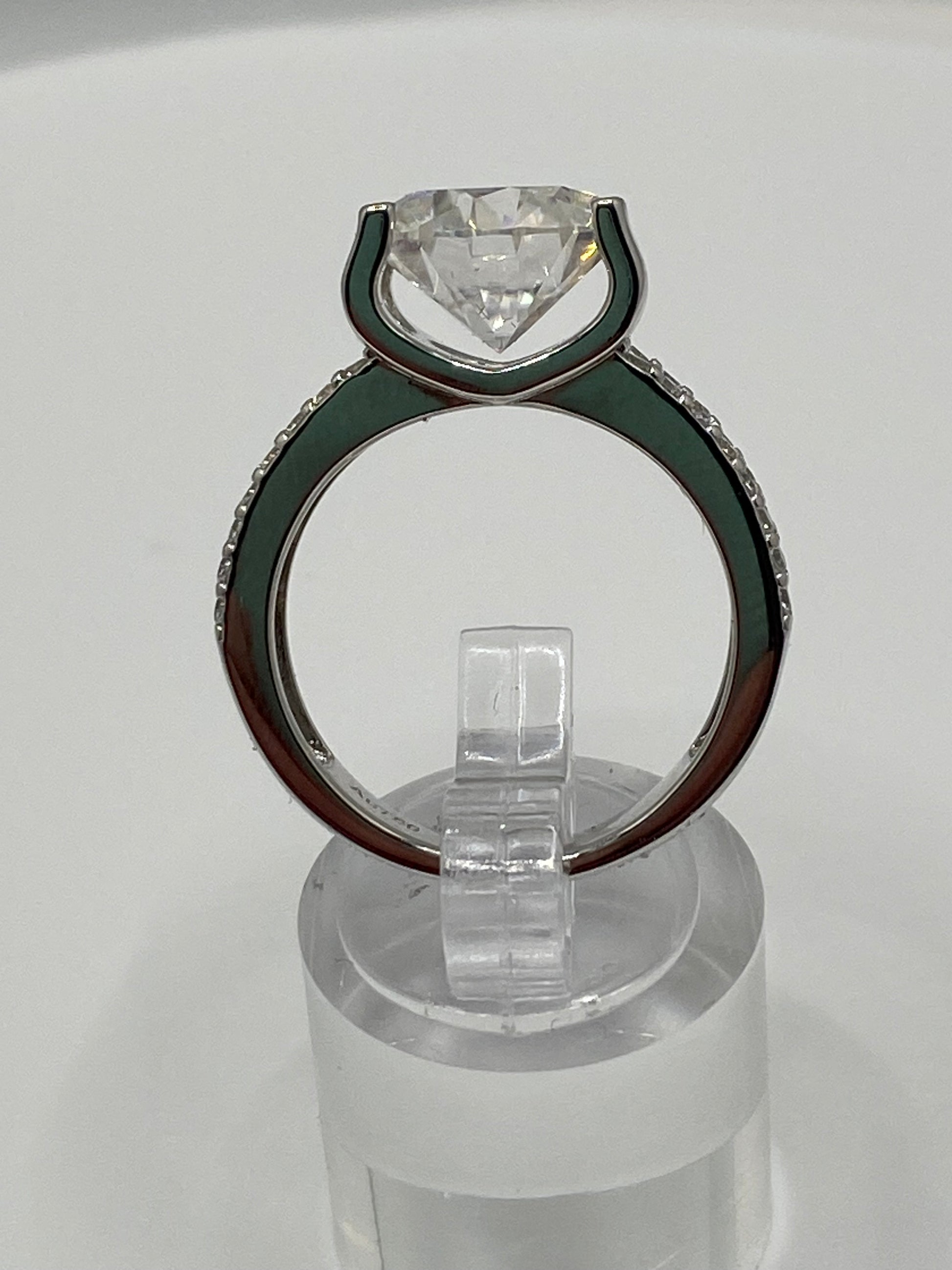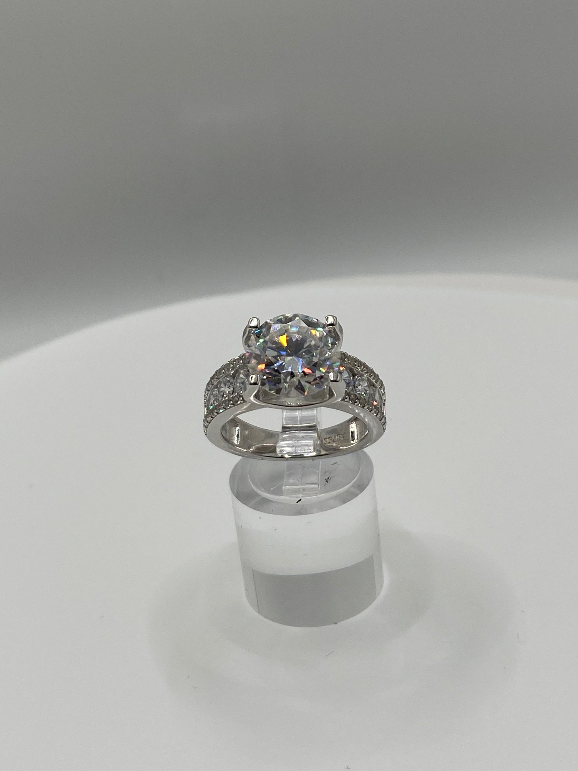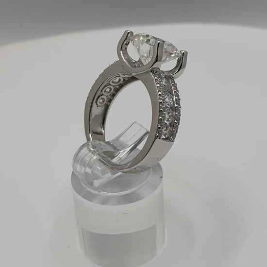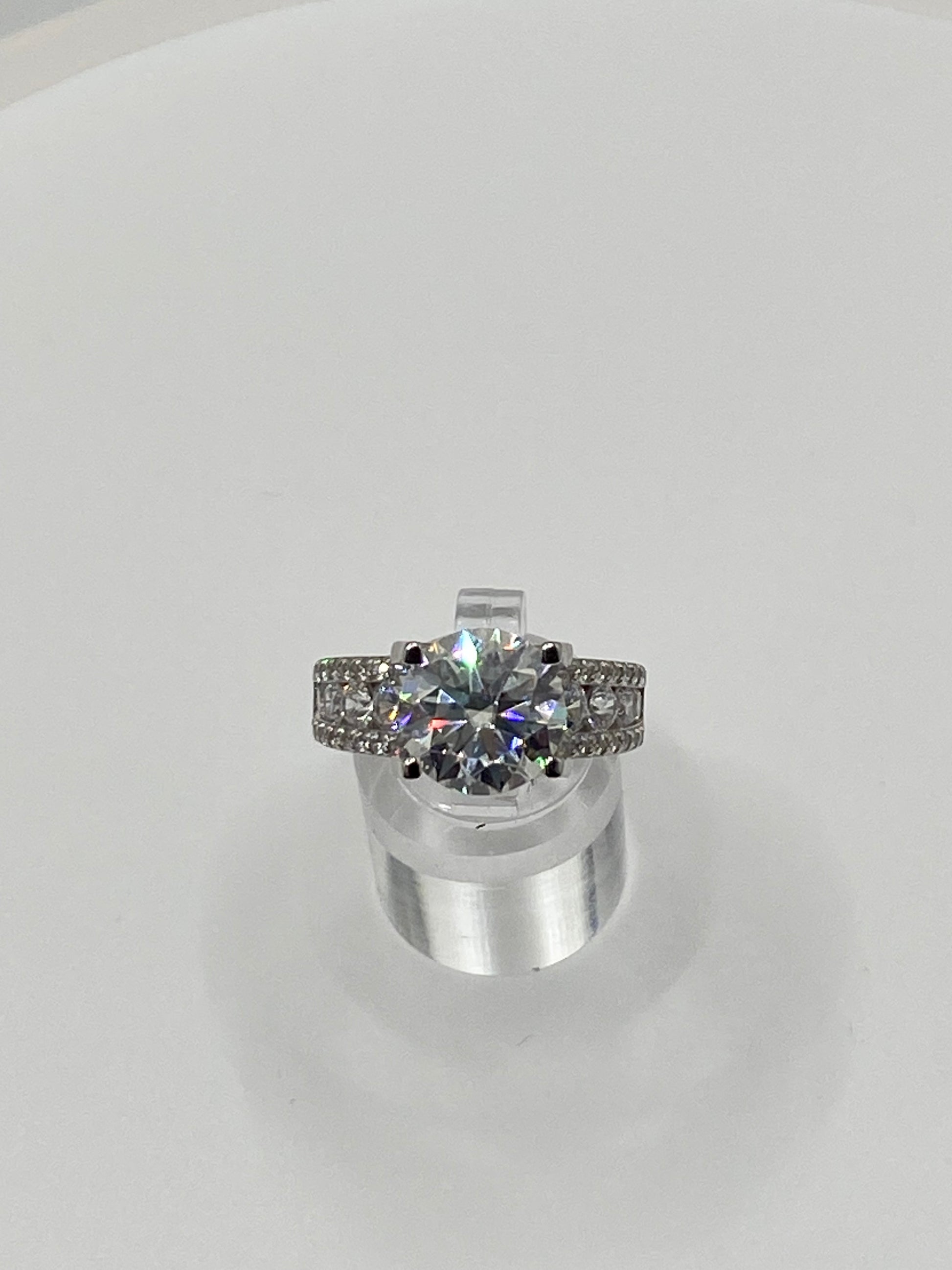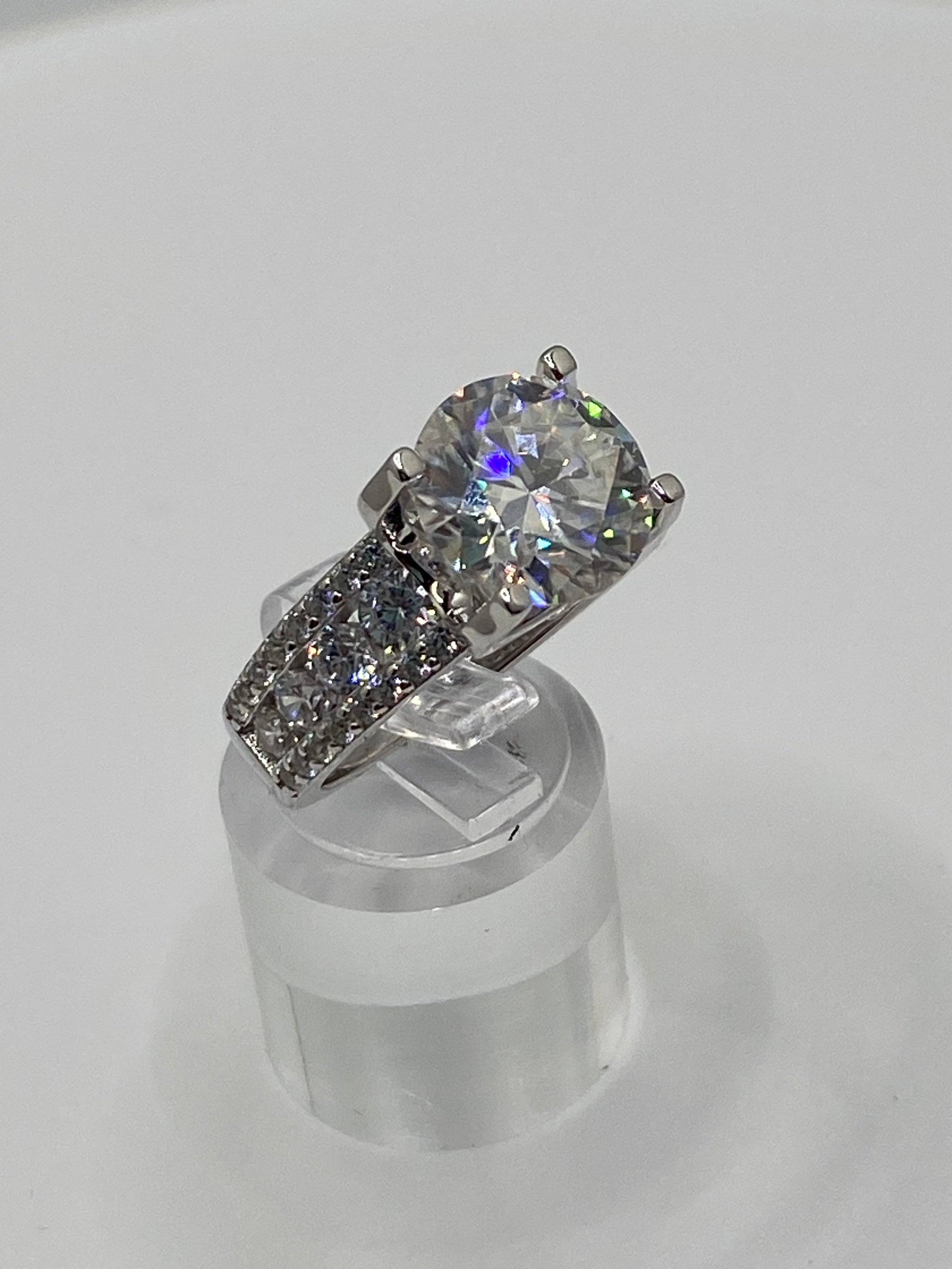 Indulge in luxury with Gianna, a bold and stunning 5 carat 18K white gold over 925Silver; Moissanite ring. Diamond tested, this statement piece sparkles with VVS1 stones for a truly romanticized touch. Elevate any look with the beauty and elegance of Gianna.