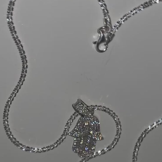 Elevate your jewelry collection with this Small Hamsa Pendant featuring brilliant Baguette & Round Moissanite Stones, each diamond tested for authenticity. Crafted with VVS1 clarity, the pendant offers exceptional sparkle and refined sophistication, perfect for adding a meaningful yet luxurious touch to your jewelry collection.