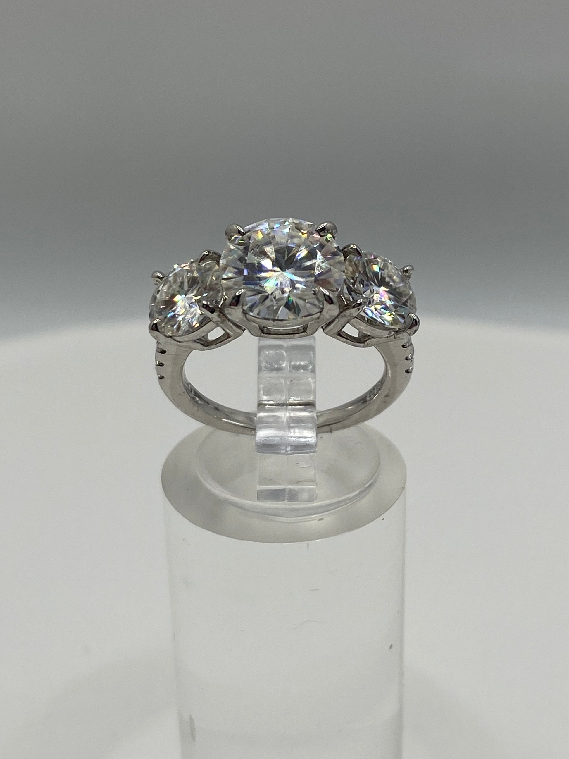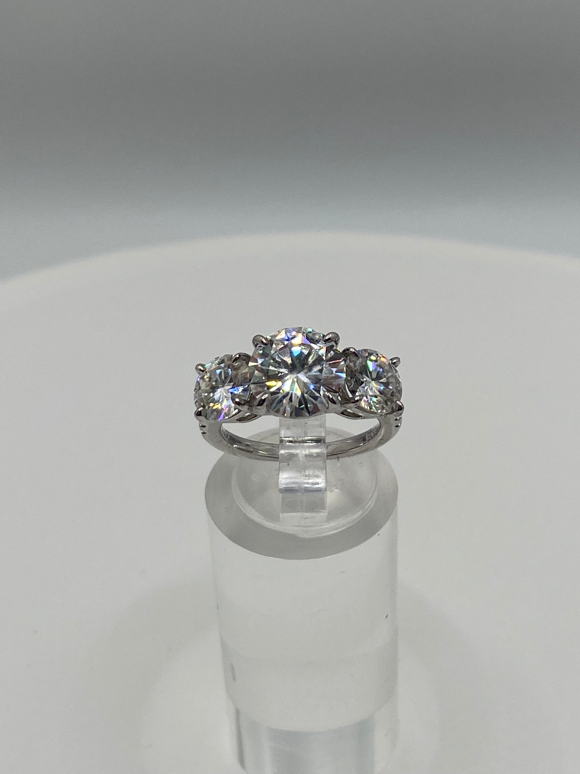 Introducing Rheya, the perfect symbol of love and passion. This exquisite ring features a 3 carat moissanite center stone, flanked by two stunning 1 carat stones. Made of Sterling silver S925, this ring has passed the diamond tester, proving its VVS1 clarity and D color. Prepare to shine brighter than diamonds with Rheya.