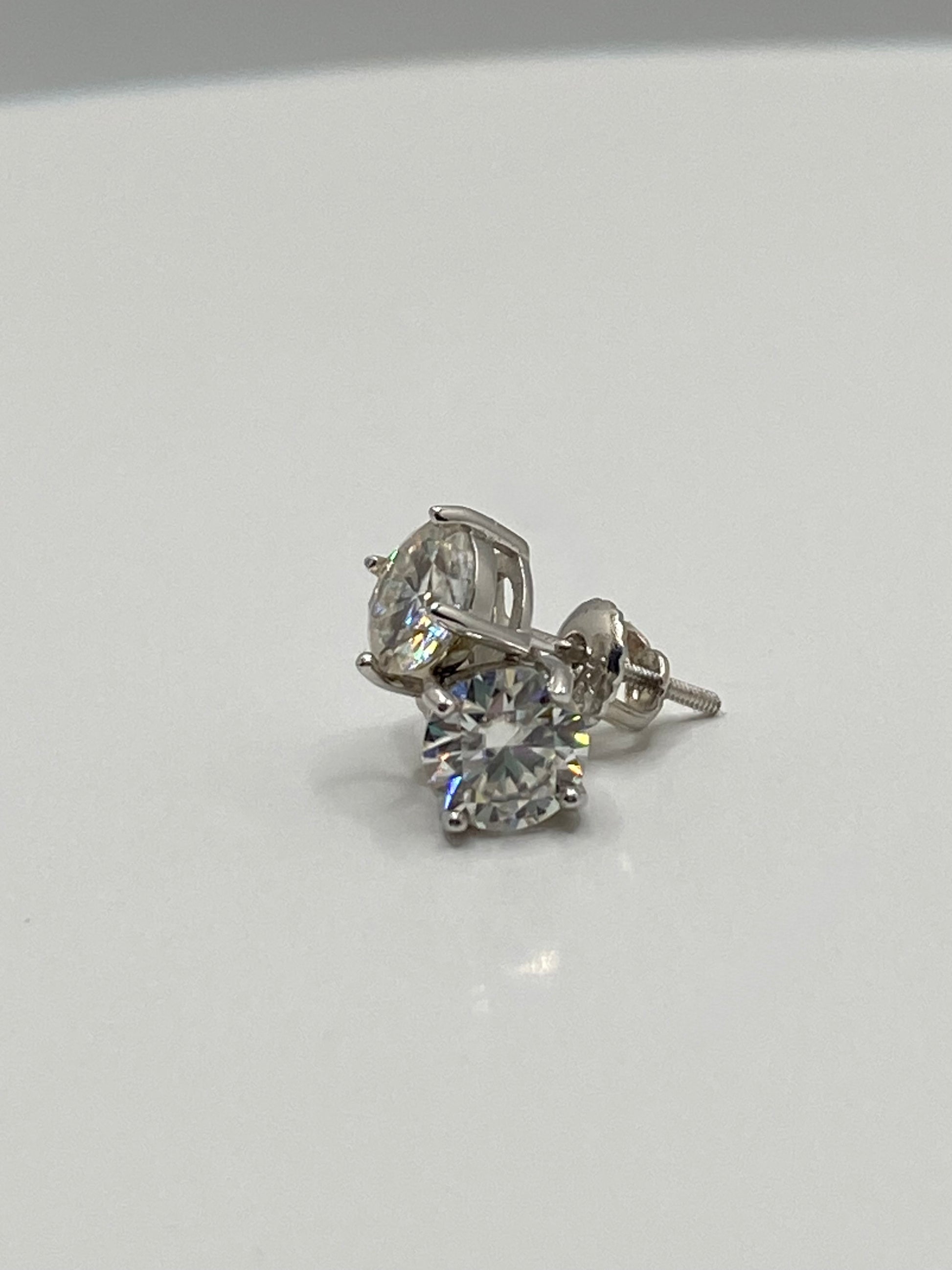 Add timeless sparkle to your collection with these classic moissanite stud earrings, designed to shine with unmatched brilliance. Each stud features a 6.5mm, 1CT VVS1 D Color moissanite, for a total of 2 carats, perfectly set in polished 925 sterling silver.