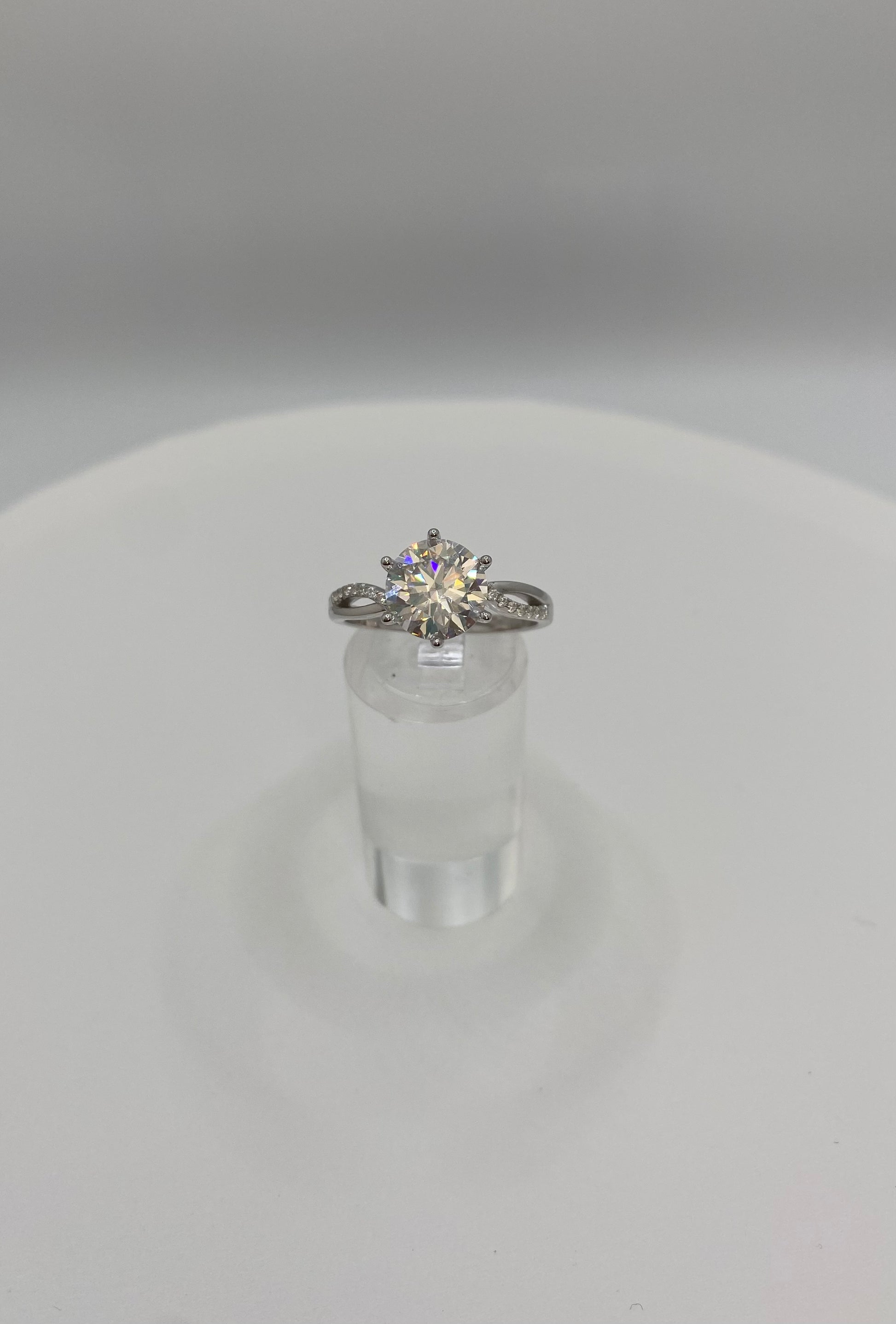 Elevate your style with Eva, a stunning 3 carat VVS1 moissanite ring. Its Infinity style band, crafted in size 9 white gold I’ve 925Silver enhances its brilliance. Certified diamond tested, the D color adds to its timeless sophistication. Experience luxury without the high cost.