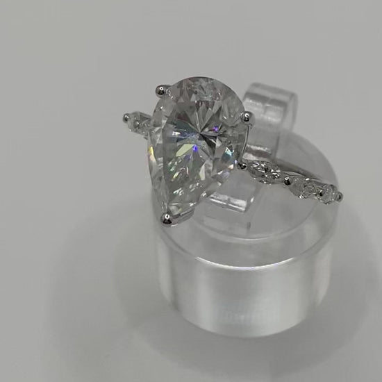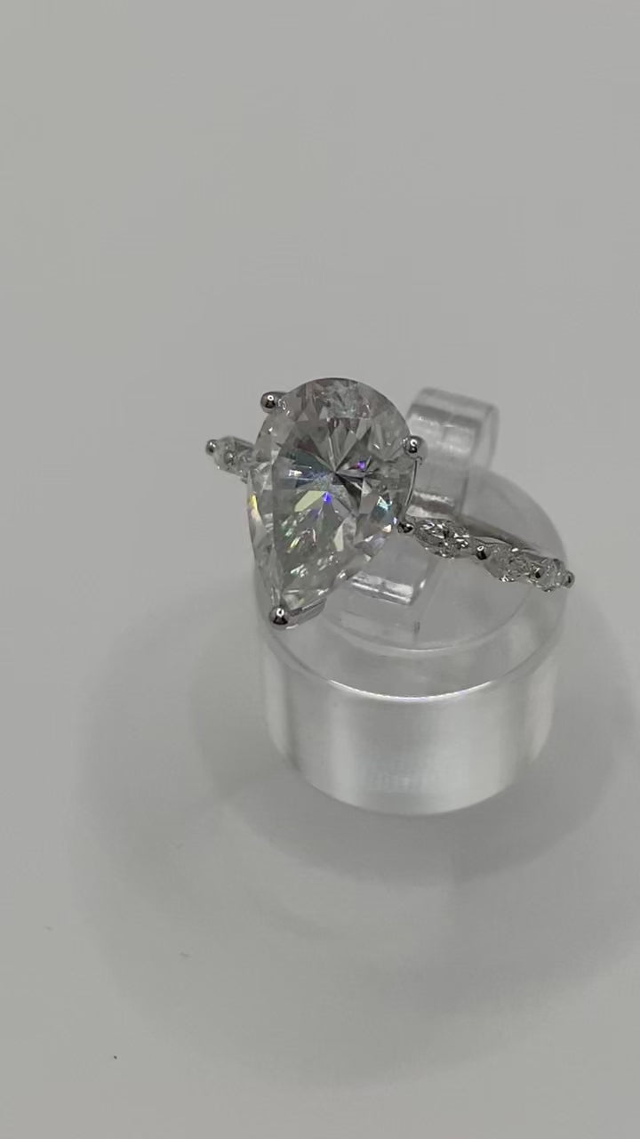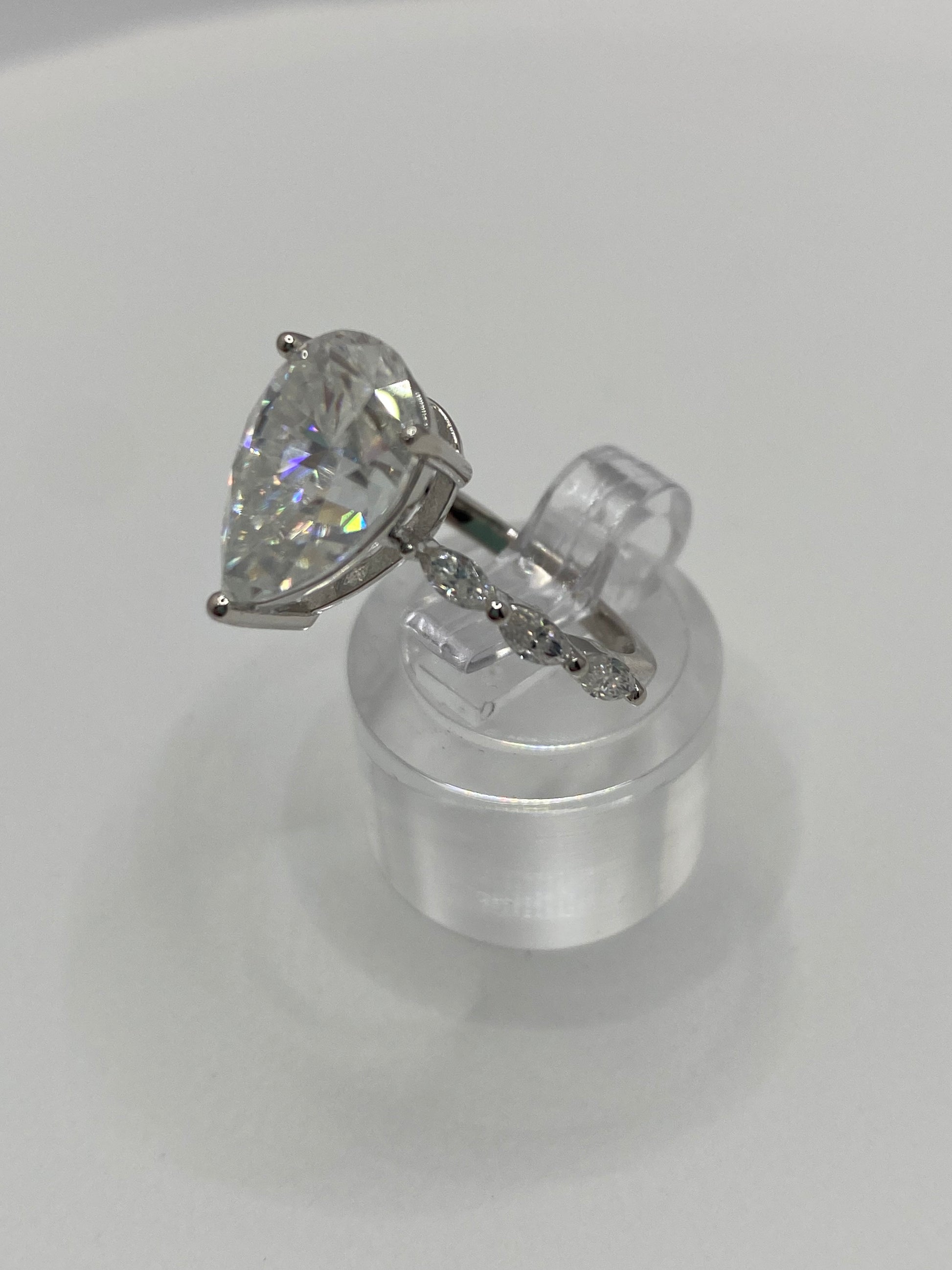 Indulge in luxury with Jill, the epitome of sophistication. Adorned with 5 pear-shaped sterling silver cart stones, each carefully selected for their brilliance and clarity. Paired with the brilliance of moissanite and the superior clarity of VVS1, this piece exudes opulence and elegance. Elevate your style with Jill.