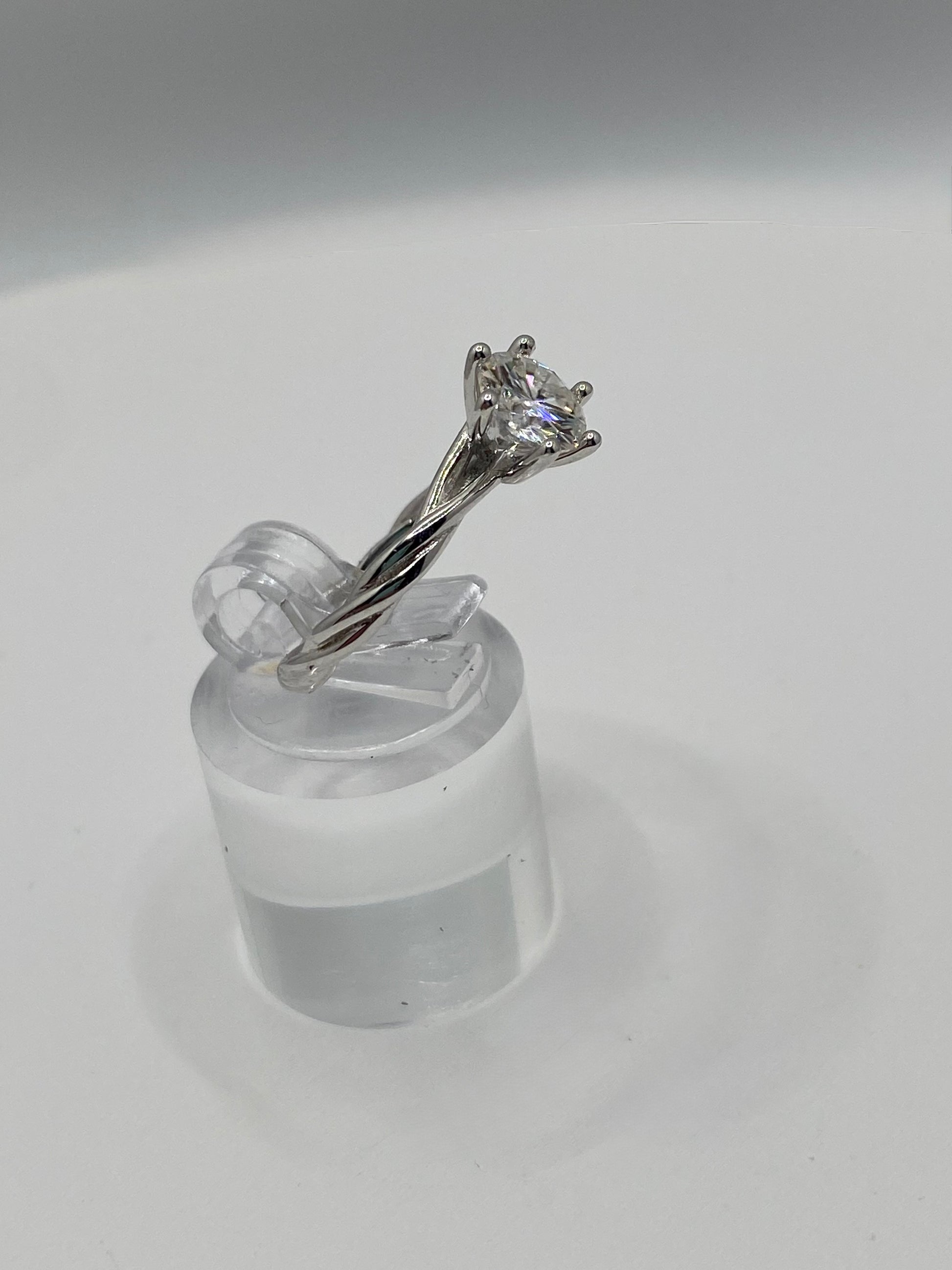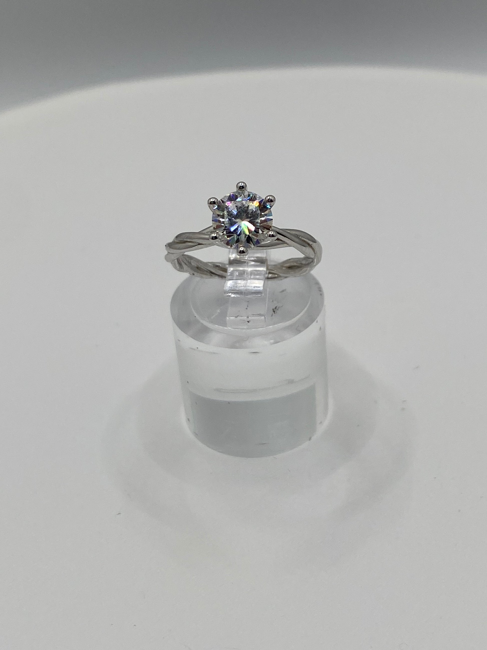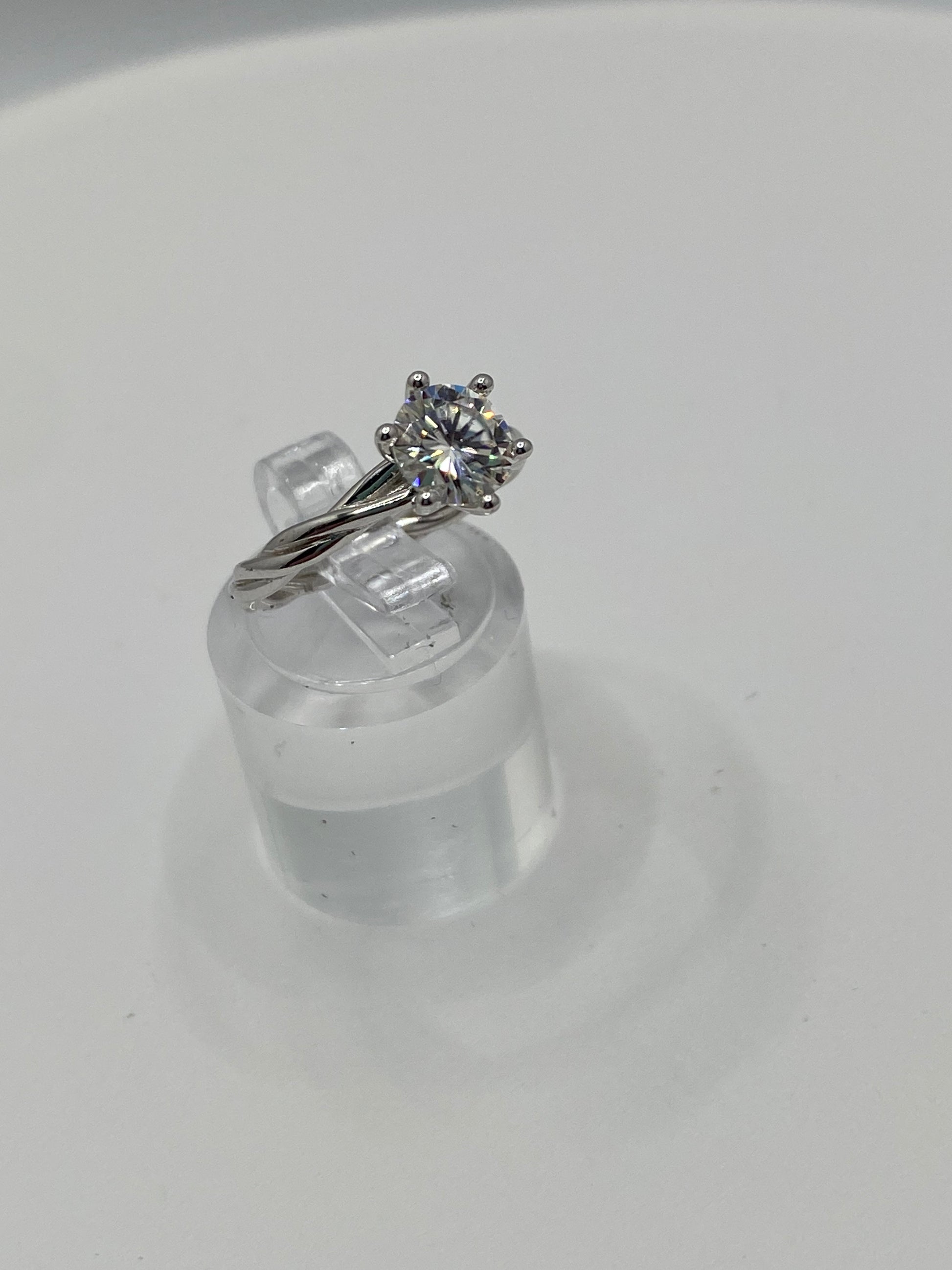 Lana, the perfect ring for your special someone. With its dazzling 1 carat size, VVS1 clarity and diamond tested moissanite, it is sure to make a statement. Show your love and commitment with Lana.