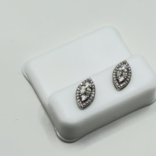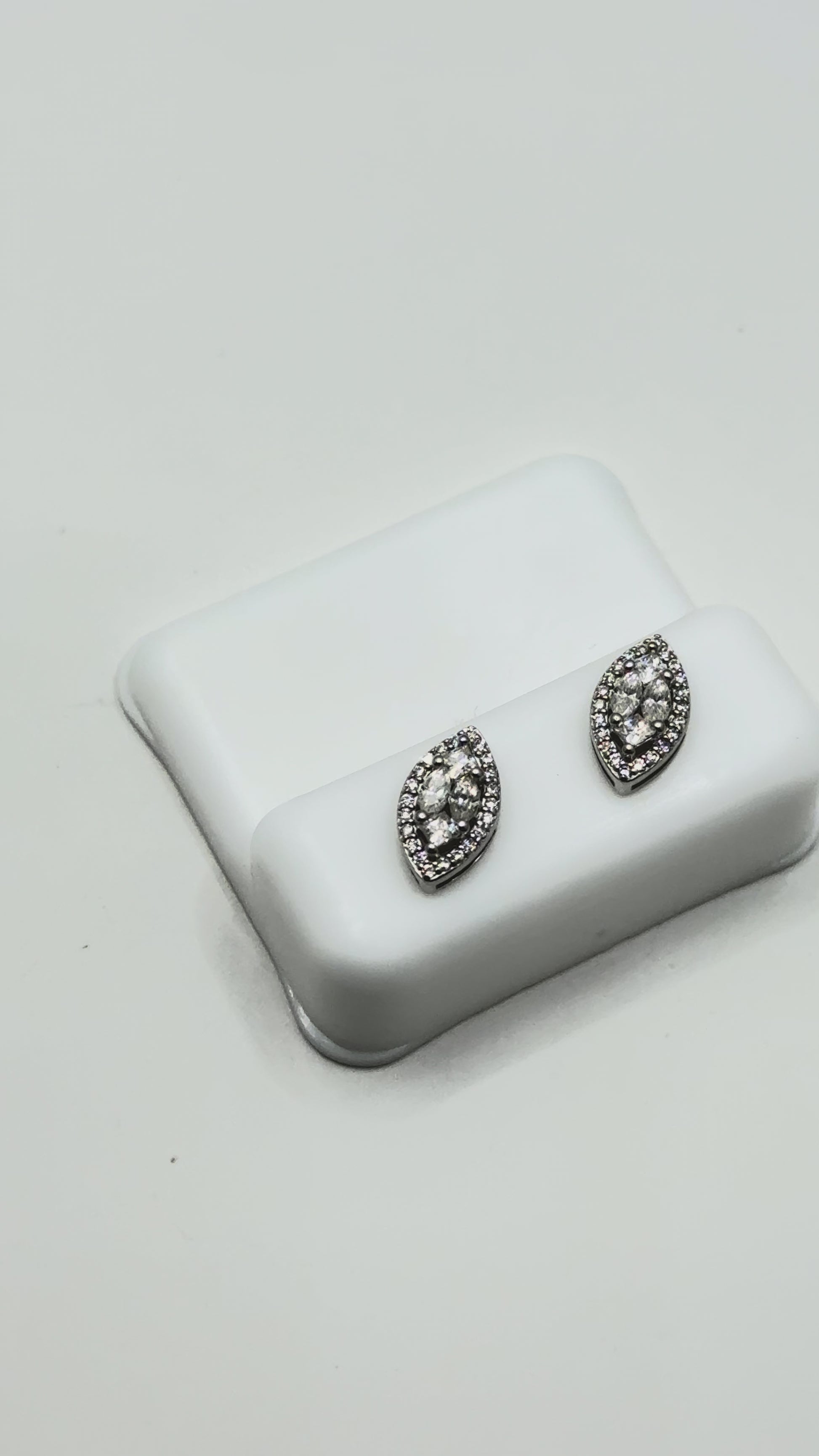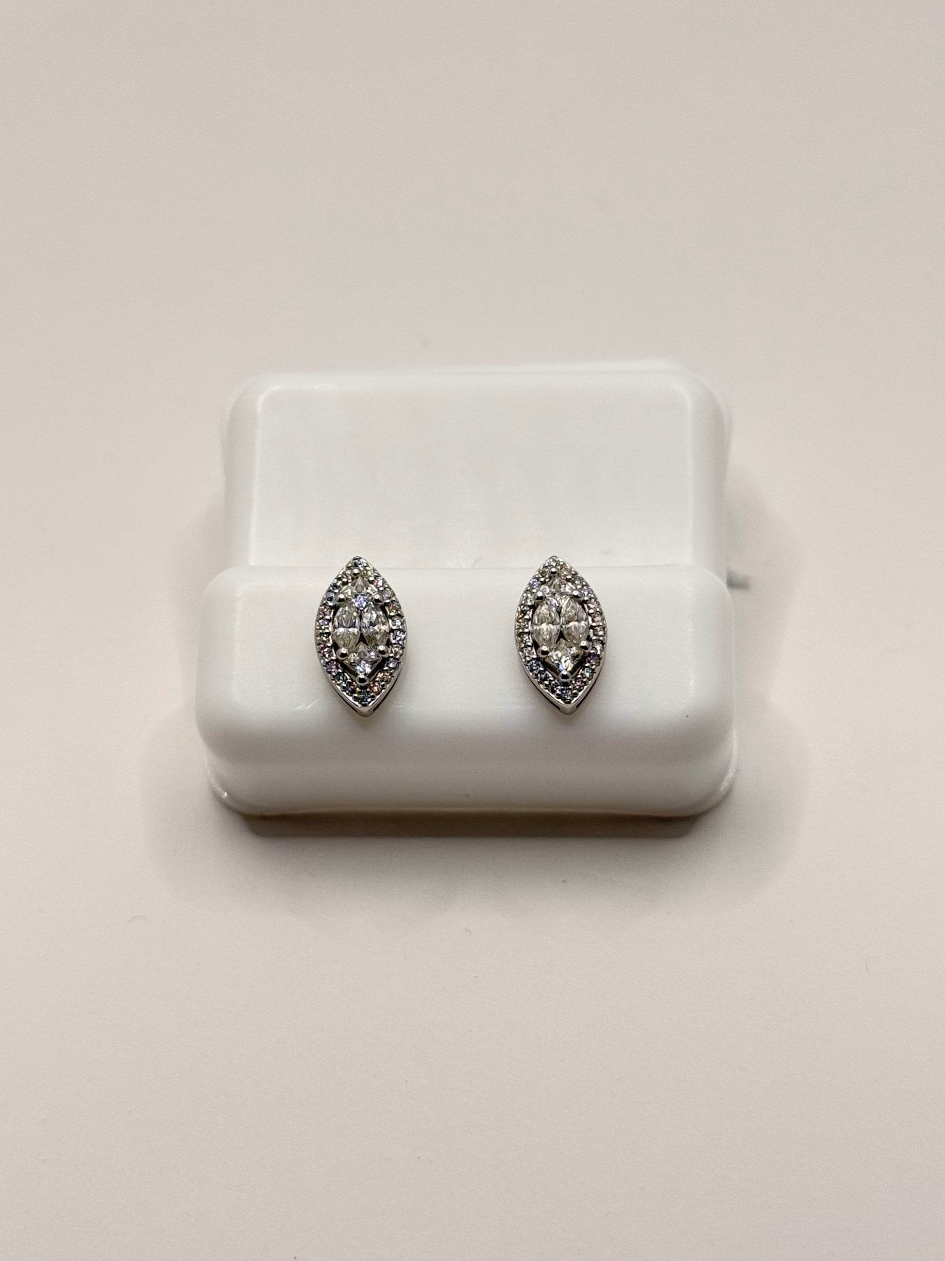 Turn heads with timeless elegance. These marquise-cut pavé stud earrings feature 1.3 total carats of brilliant VVS1 moissanite, expertly cut for maximum fire and sparkle. Each 12mm x 7mm earring is diamond tested for authenticity and set in a shimmering pavé halo that adds depth, brilliance, and luxury.