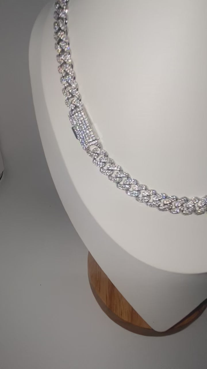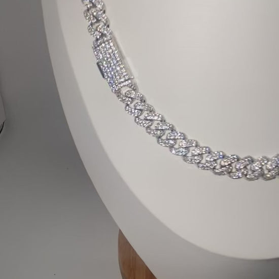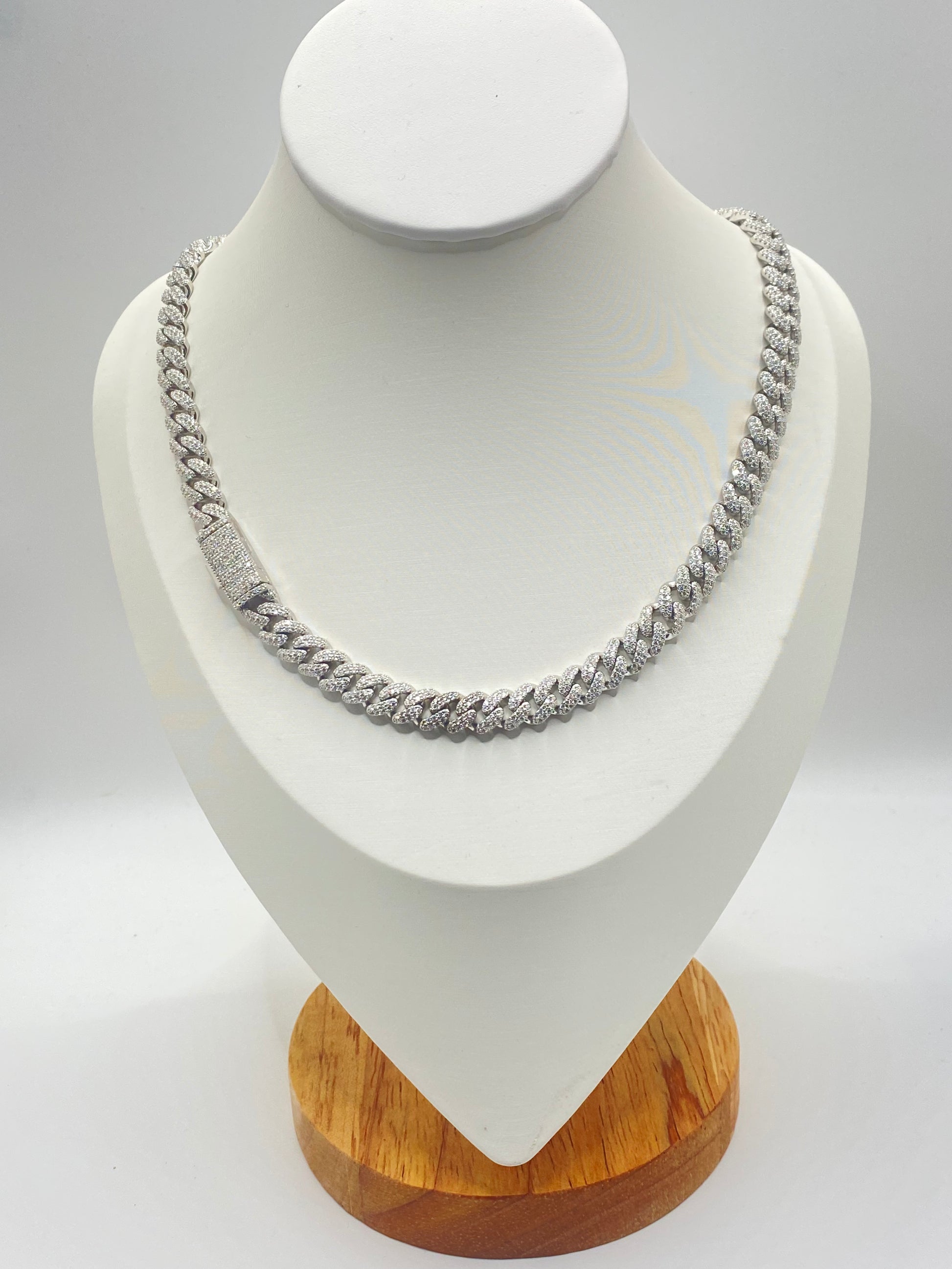 Expertly crafted with 925 silver and a sleek Rhodium finish, the Miami Cuban 8mm chain exudes luxury and durability. Featuring sparkling VVS1 Moissanite, this 18in chain is the perfect accessory for an upscale and timeless look. Elevate your style with this exquisite piece.