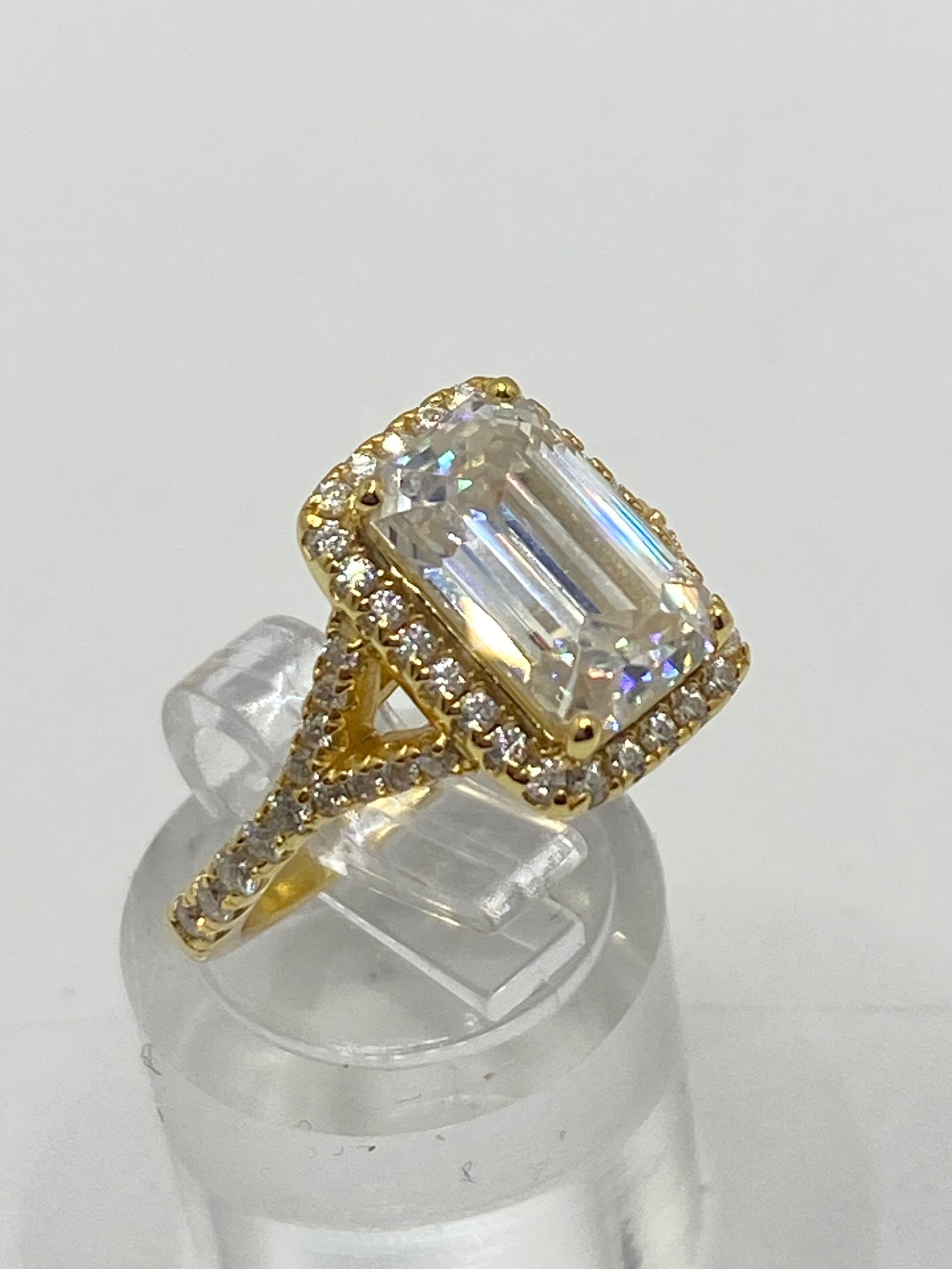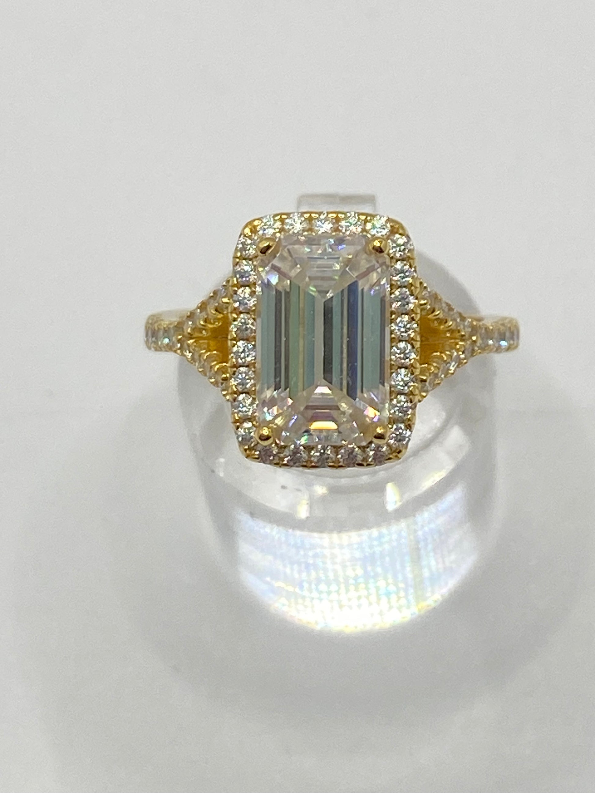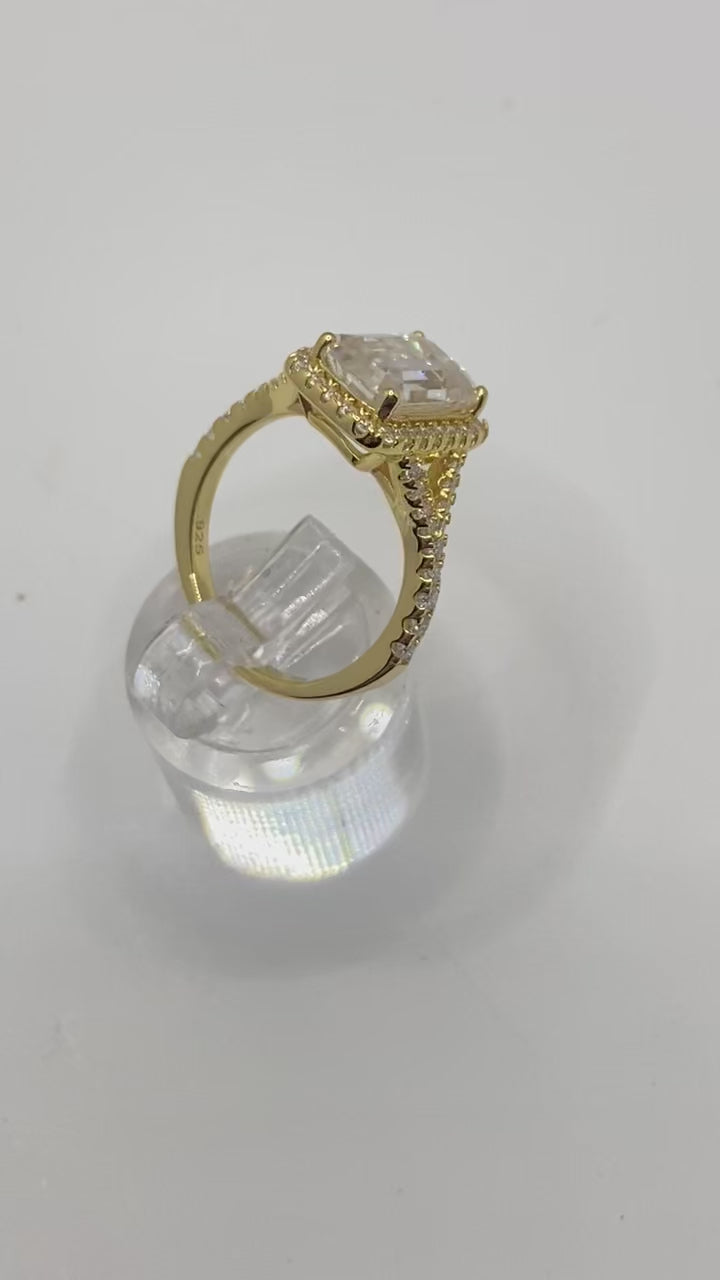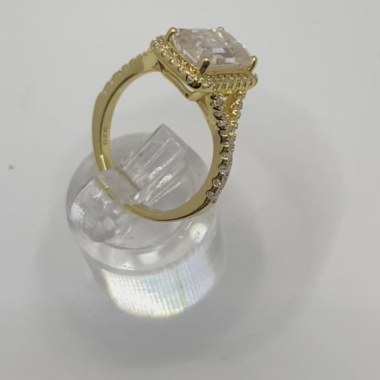 Indulge in luxury with Nara. Featuring a 4 carat emerald-cut Moissanite Center Stone, 4.4 total carat weight, and 18k gold vermeil S925, this ring exudes elegance. With VVS1 clarity and D Color, it's a statement piece fit for any occasion. Elevate your jewelry collection with Nara.