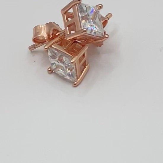 Enchant your royal court with our Princess Rose Gold ring. The elegant rose gold plating adds a touch of royalty to your look. Each VVS1 - 1.25 carat princess cut diamond sparkles with a total weight of 2.5 carats, exuding grace and sophistication. These diamond tested studs are a must-have for any princess!