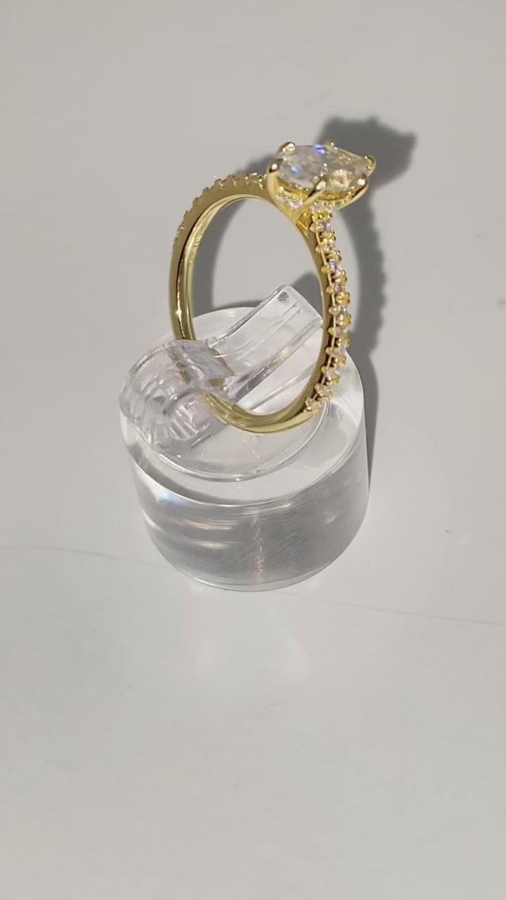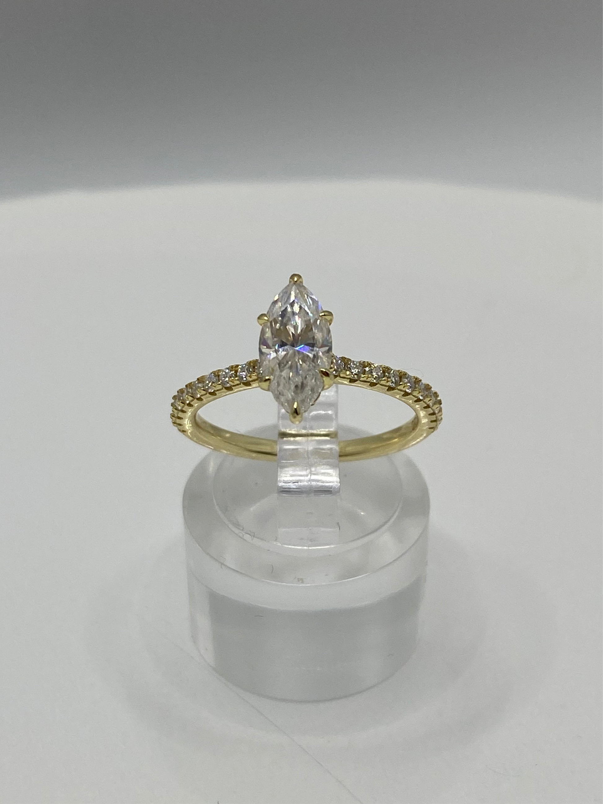 Introducing Sitara - a timeless treasure to pass down for generations. This 1 carat marquise ring, crafted in gold over silver, showcases a sparkling moissanite stone with VVS1 clarity. Make a statement and add a touch of luxury to any outfit with Sitara.