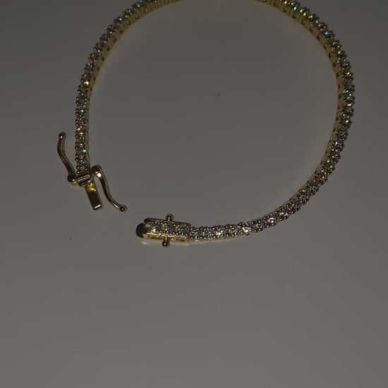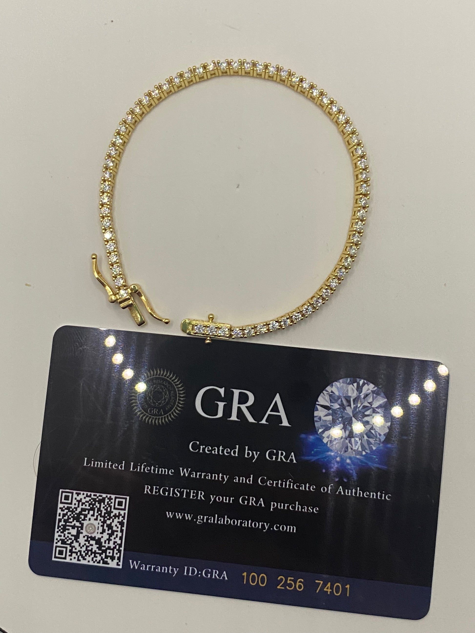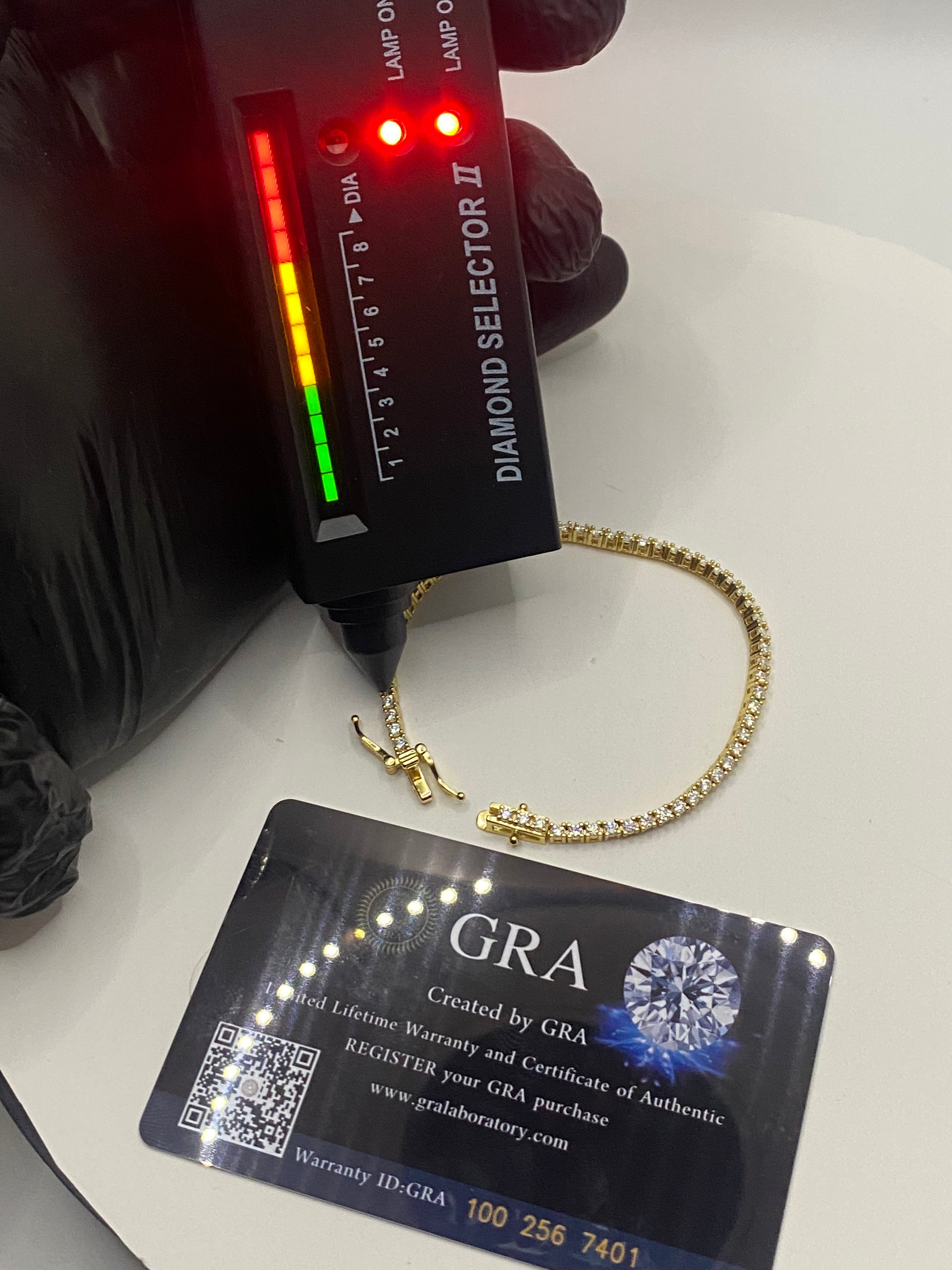Upgrade your jewelry collection with our 2mm 925 silver 18k vermeil tennis bracelet. Crafted with stunning moissanite stones, each one is VVS1 and Diamond Tested with GRA CERTIFICATION - ensuring exceptional quality and sparkle. Elevate any outfit with this elegant and timeless piece.