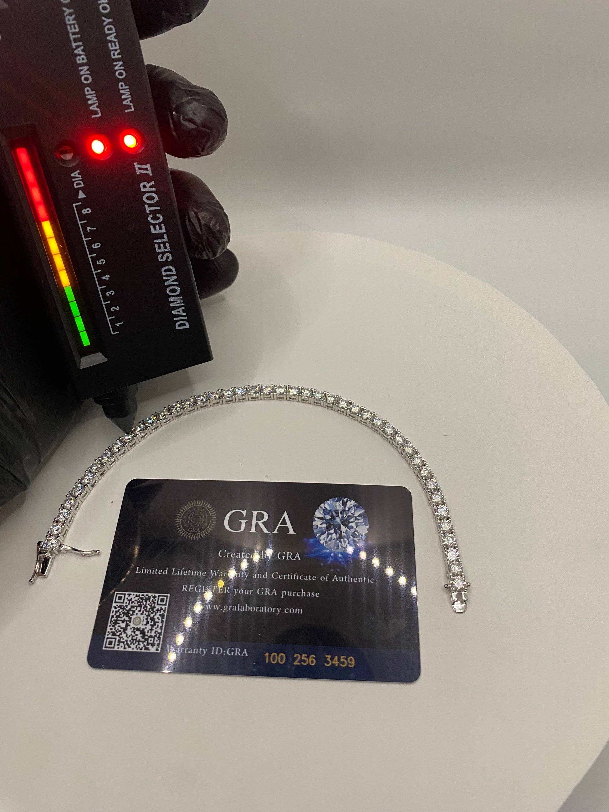 Sparkle up any outfit with the Tennis Bracelet in Sterling Silver. This stunning 4mm bracelet features VVS1 moissanite and diamond tested for ultimate shine, all with GRA certification. Perfect for adding a touch of luxury to any occasion.