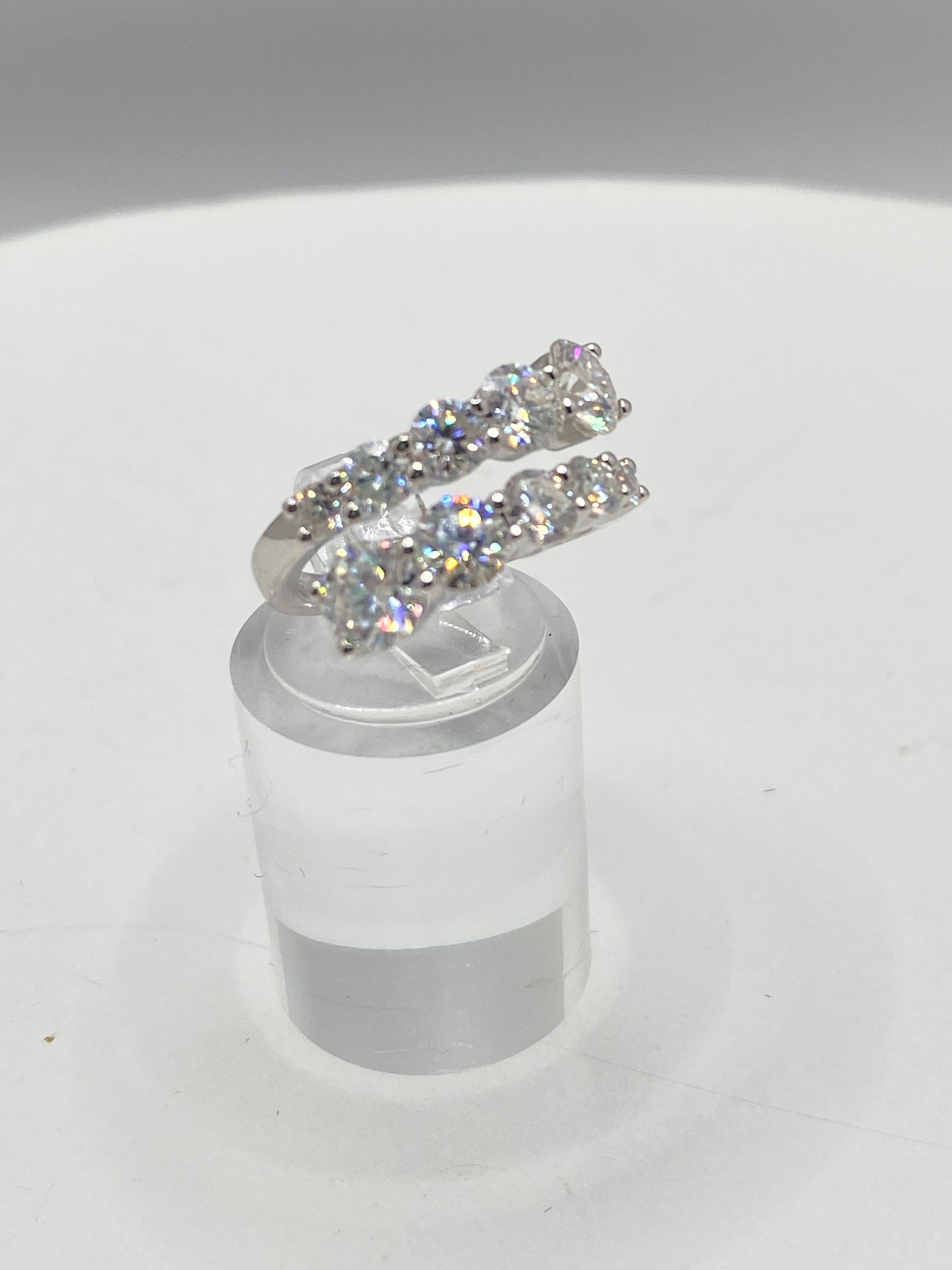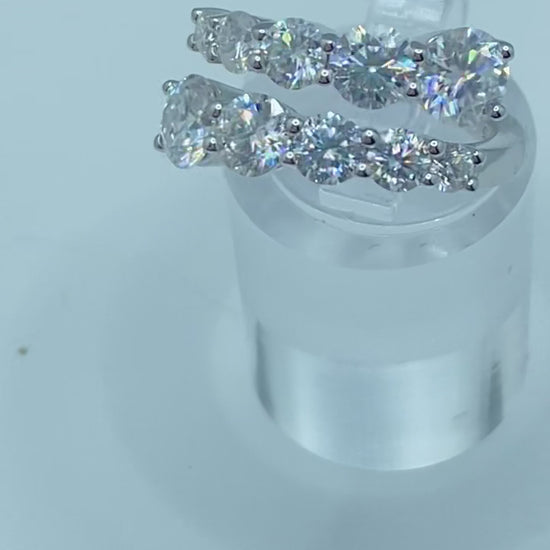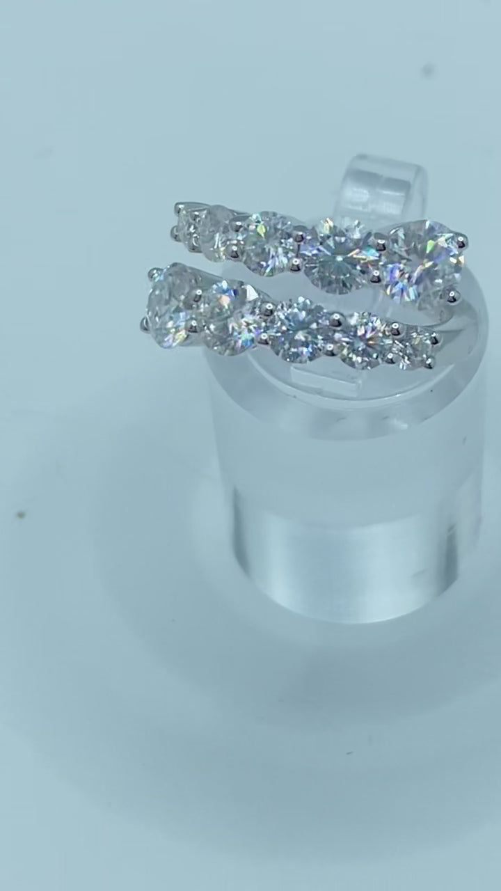 A breathtaking 3.26-carat moissanite band that radiates timeless brilliance. Crafted in S925 sterling silver, this Size 5 ring features a continuous row of VVS1, diamond-tested moissanites that shimmer with every movement. Its elegant, double-row design captures a balance of luxury and sophistication perfect for stacking, pairing, or shining all on its own.